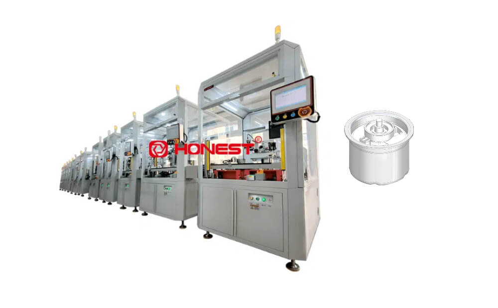 The automobile air suspension motor production line is configured with a conveyor line + automatic machine. The conveyor mechanism uses a flat belt carrier for transmission, and is equipped with a small amount of people for manual work and line inspection. It is composed of multiple pieces of equipment, arranged in a linear manner; Industrial control and data collection system realizes the traceability of product production process information, and highly integrates visual inspection, material reverse detection, missing packaging identification, pressure monitoring, welding inspection and other process methods to achieve foolproof and error-proofing effects. The design considers product upgrade needs, and reserve space for modifications.