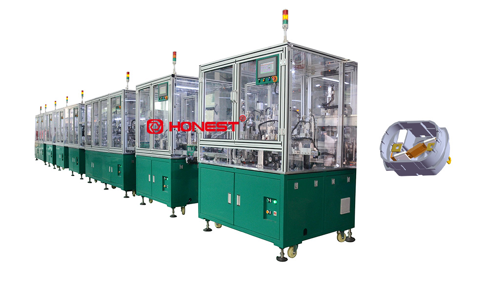 Fully automatic motor end cap cover assembly line adopts a modular design and has strong compatibility. It is compatible with 23 products and has an efficiency of 3s/pcs. Quick product transfers are achieved by replacing transport pallet, adjusting and replacing blades and replacing special parts. It is equipped with a visual inspection system to achieve stable and efficient product inspection and improve production efficiency. Mainly completed: automatic loading, connectors, capacitors, inductors, welding, testing and unloading and other assembly processes.